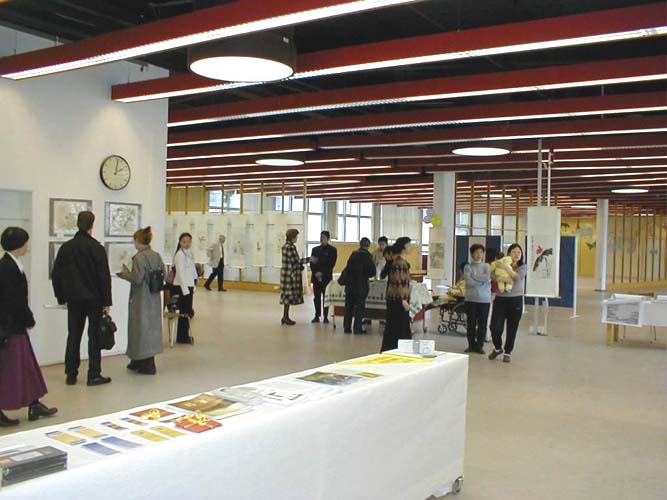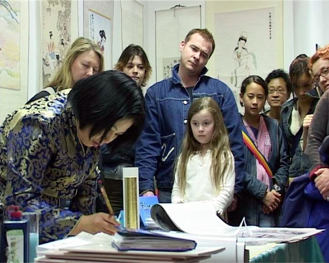 在丹麦哥本哈根成功举办的章翠英绘画展--参观者学功