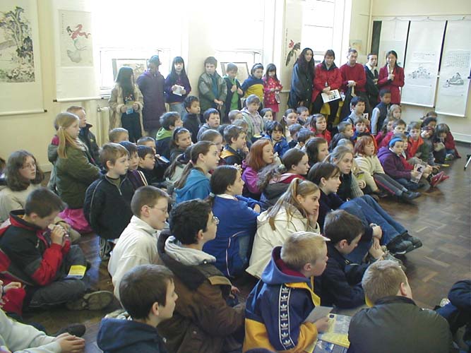 在丹麦哥本哈根成功举办的章翠英绘画展-孩子们看录像