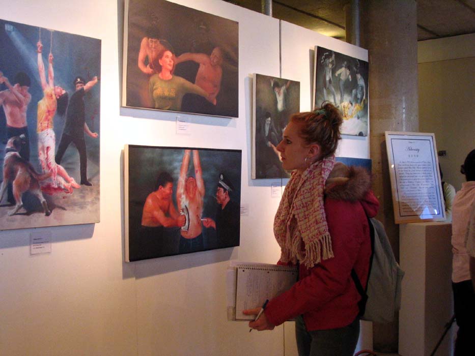 “真善忍”国际美展在加拿大维多利亚展出 令参观民众震惊