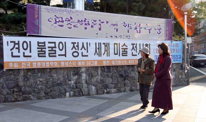 韩国各地举办“坚忍不屈的精神”美术展 使越来越多的韩国人了解了法轮功真相