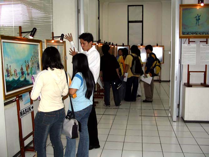 印尼《泗水邮报》 报道法轮功艺术画展 文章标题为“用绘画寻求正义 ”