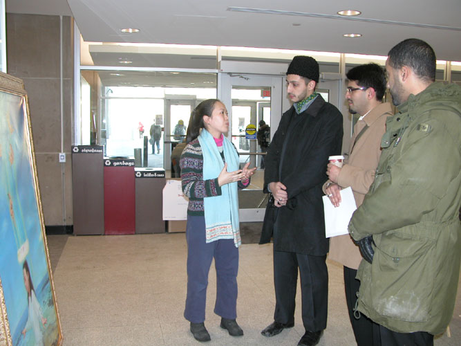 法轮功学员在多伦多大学举办“坚忍不屈的精神”艺术展 师生们纷纷前来了解真相