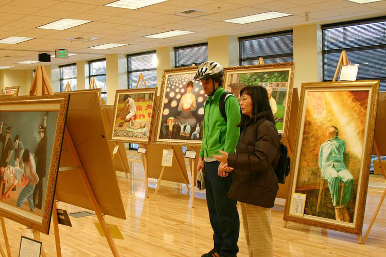 法轮功学员“坚忍不屈的精神”画展在西雅图展出