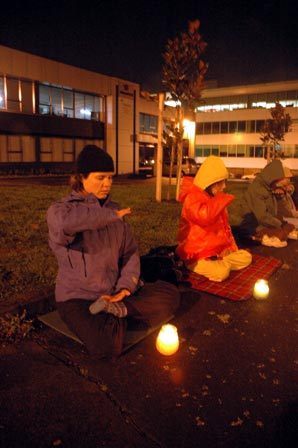 日本法轮功学员在福冈中领馆前烛光守夜发正念和平抗议中共的残酷迫害2006-12-31