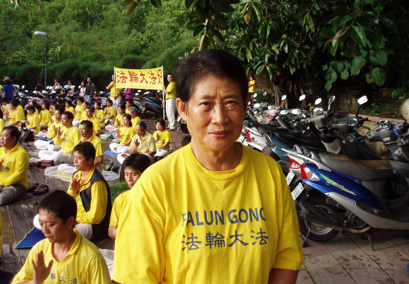 法轮功学员在台东市举行烛光悼念会追悼被中共迫害致死的学员图为集体炼功2008-7-20