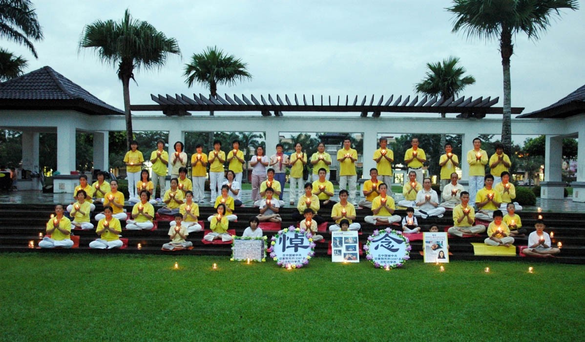 台湾屏东县立体育馆的学员在二零零五年七月二十日举办烛光悼念会 悼念大陆被迫害致死的同修