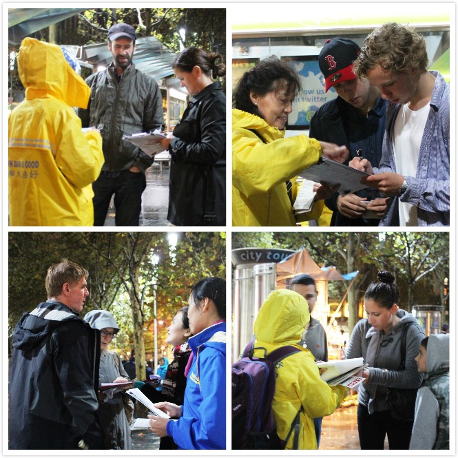 墨尔本法轮功学员冒雨在市中心城市广场举行烛光守夜活动