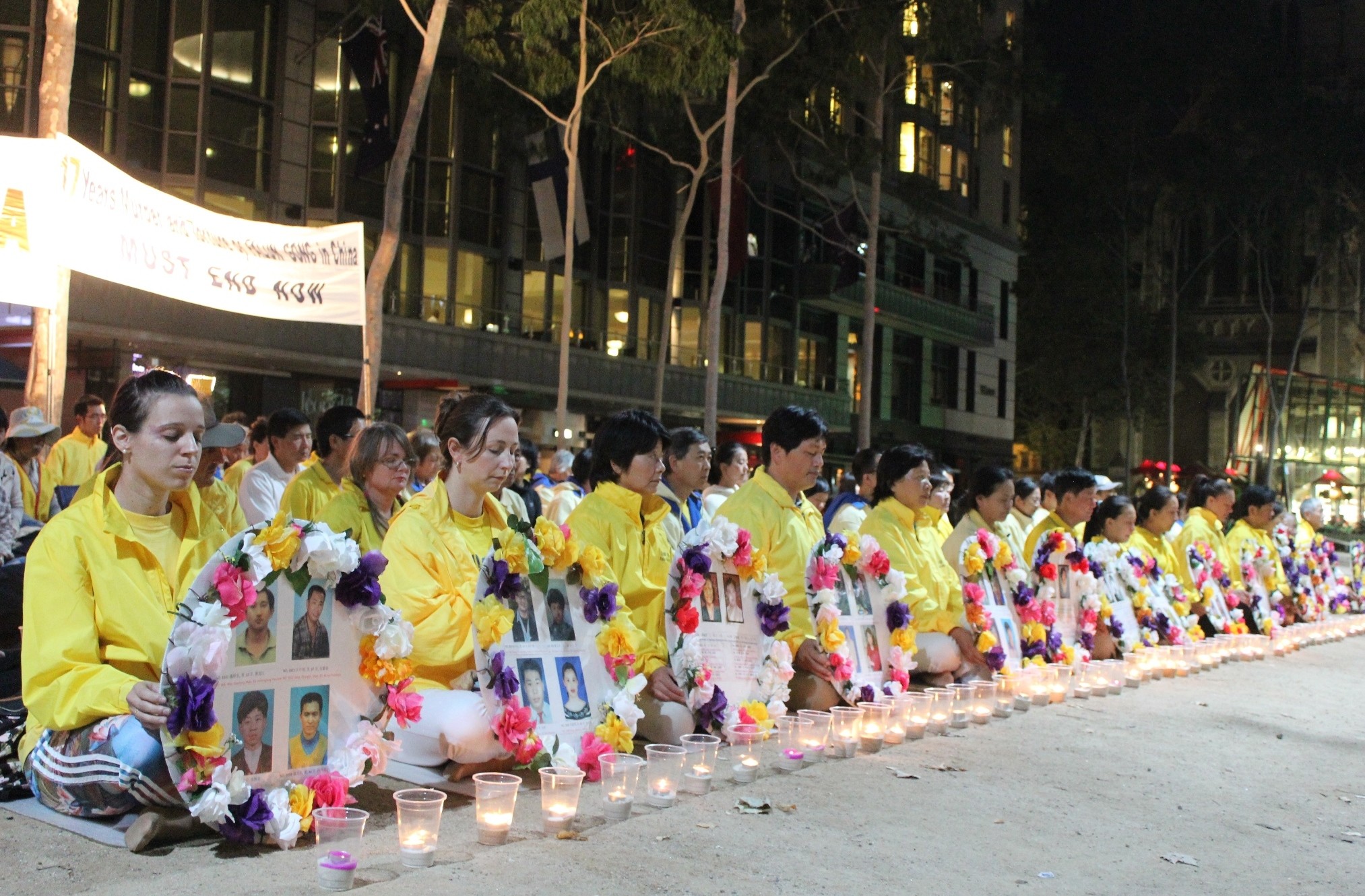 墨尔本法轮功学员在城市广场烛光夜悼