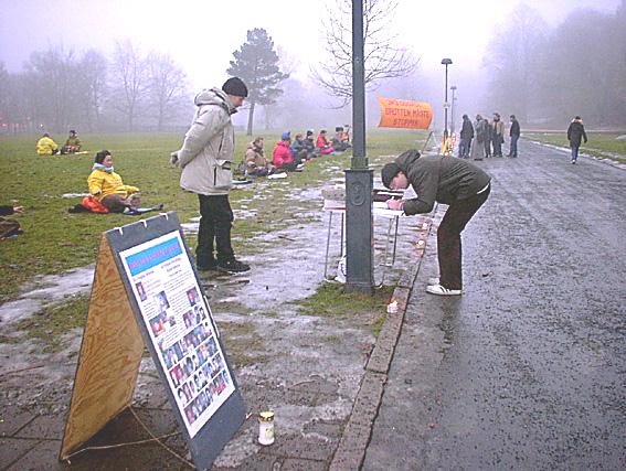 瑞典法轮功学员在哥德堡烛光悼念被迫害致死的同修