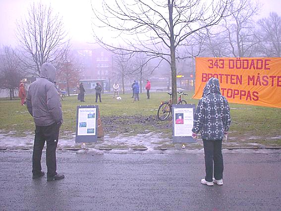 法轮功学员于中国新年夜在芬兰赫尔辛基中心火车站一侧悼大陆死难同修2009-1-27