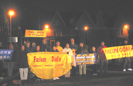 英国法轮功学员中使(领)馆前烛光悼念同修(图)