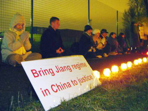 英国法轮功学员烛光守夜 要求法办江罗刘周(图)