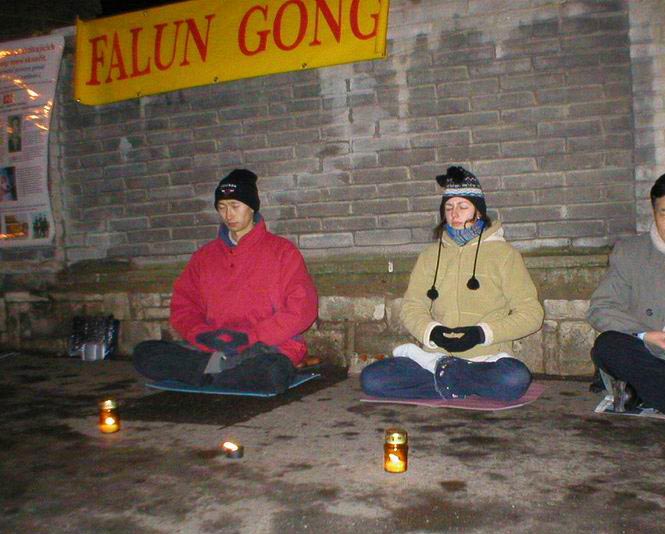 丹麦法轮功学员国际人权日中使馆前请愿,烛光守夜