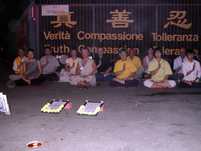 意大利法轮功学员烛光守夜 揭露迫害悼念同修