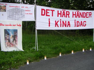 瑞典学员在哥德堡中国领事馆前举行烛光守夜悼念在中国遭受酷刑致死的同修