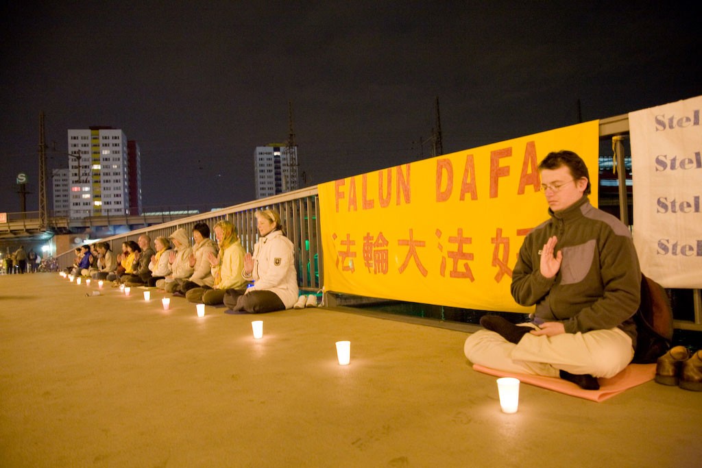 德国学员烛光守夜 纪念四二五 抗议中共迫害法轮功