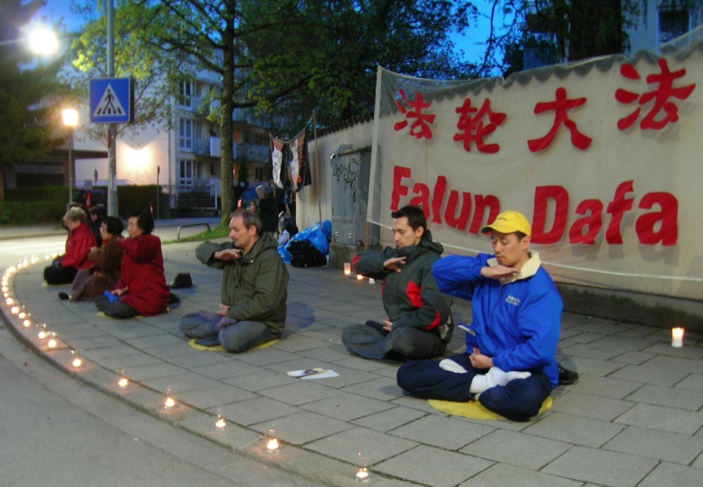 德国法轮功学员在慕尼黑领事馆前烛光夜悼 纪念四二五