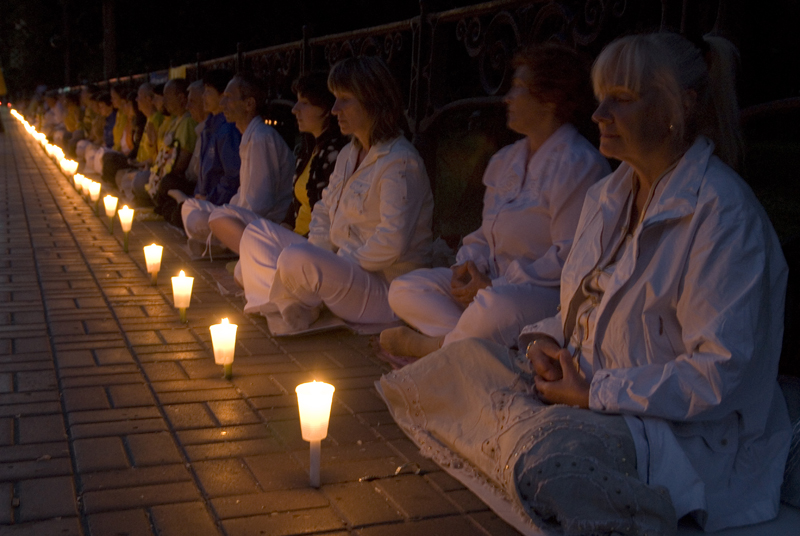 乌克兰法会期间 学员进行烛光守夜纪念在中国大陆被邪恶中共政治集团迫害死的2000多名大法弟子