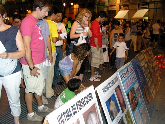 西班牙学员太阳门烛光守夜悼念被迫害致死的大陆同修 - 了解真相的人们纷纷签名支持法轮功