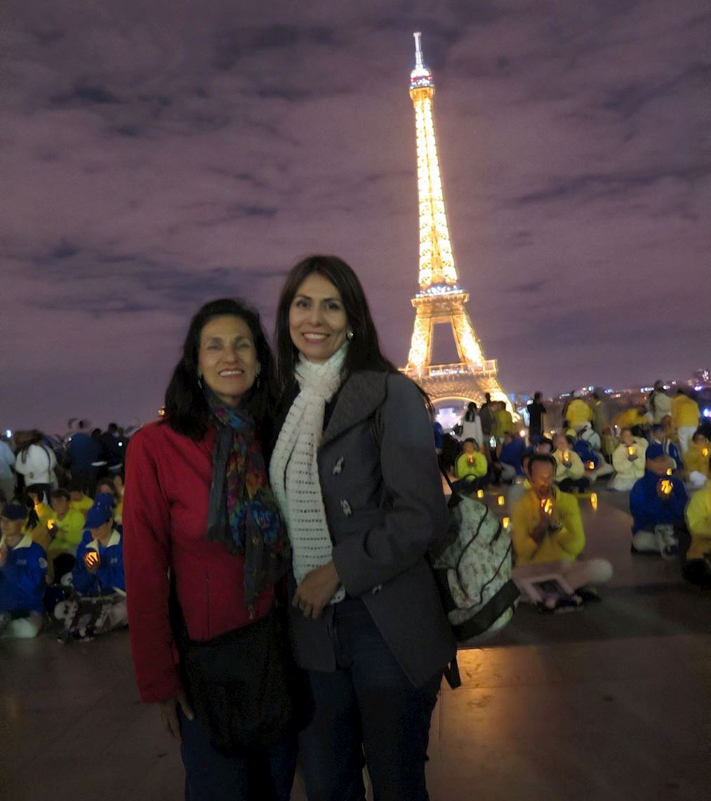 法轮功学员在巴黎埃菲尔铁塔前举办烛光守夜,悼念遭迫害致死的大法弟子