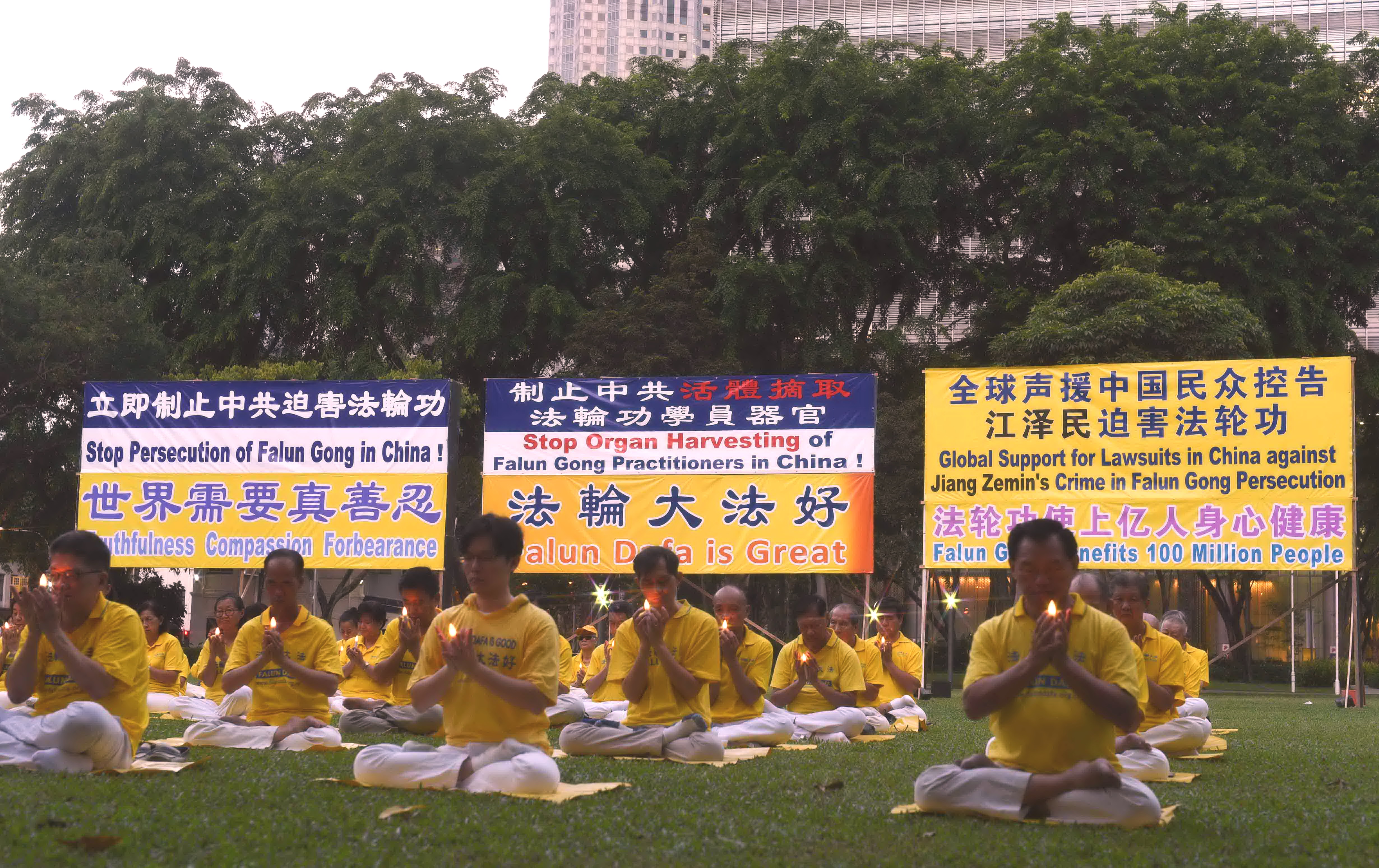法轮功学员举办十八周年系列反迫害活动图为烛光悼念