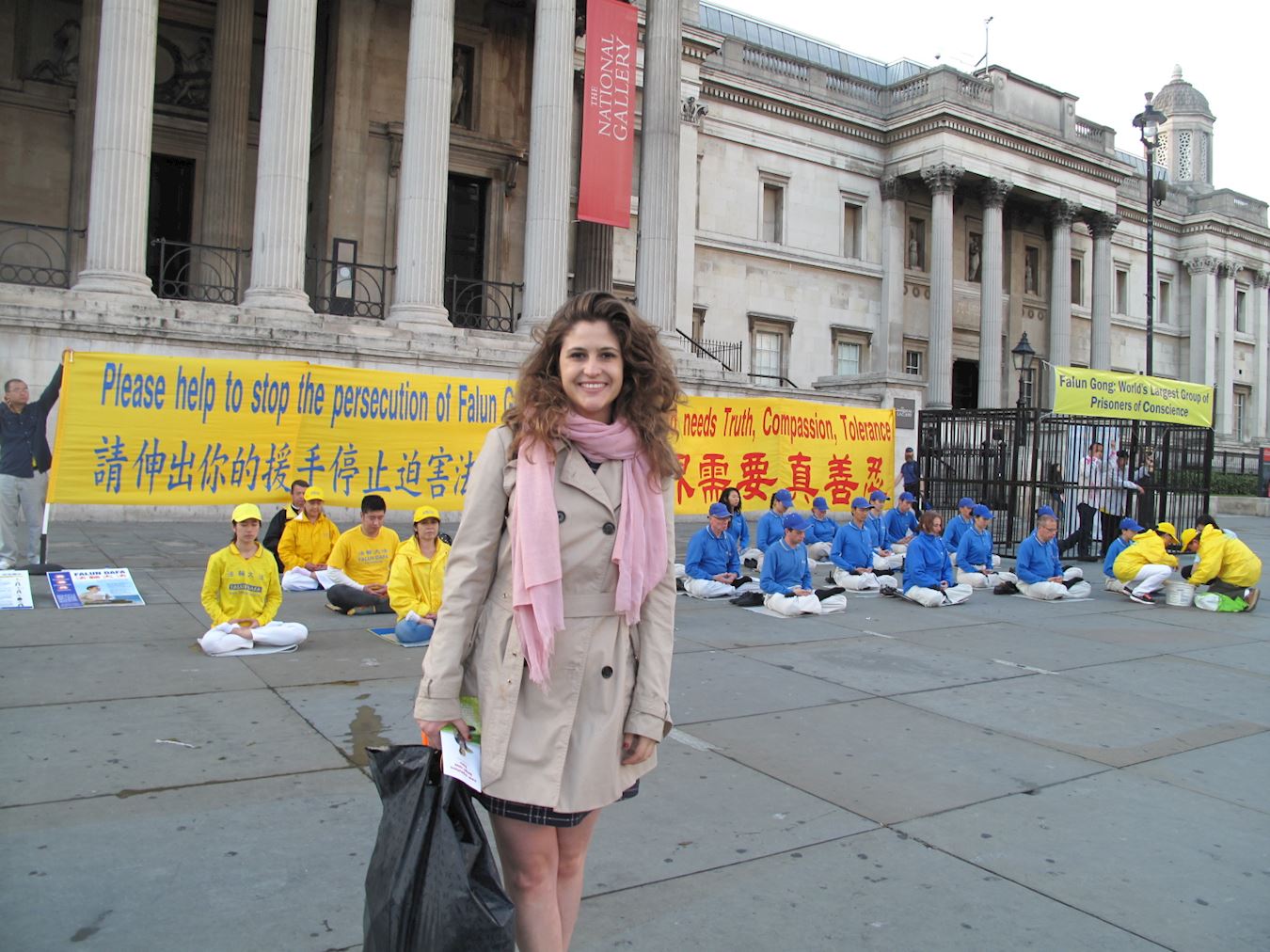 英国法轮功学员在伦敦中国大使馆前悼念被迫害致死的大法弟子