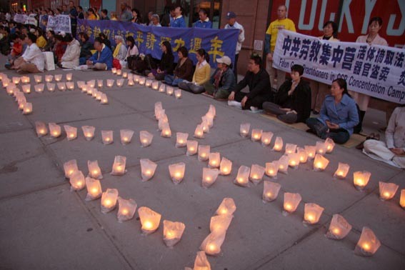 法轮功学员纽约中领馆前烛光夜悼呼吁立即停止迫害法轮功2008-7-20