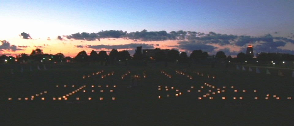 反迫害十周年,学员烛光守夜悼同修,烛光摆出的“正法”两个字