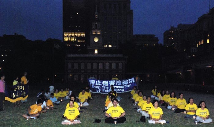 费城法轮功学员在纪念4.25十三周年烛光纪念活动上