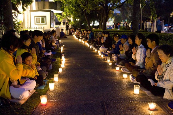 洛杉矶法轮功学员烛光纪念“四·二五”十周年