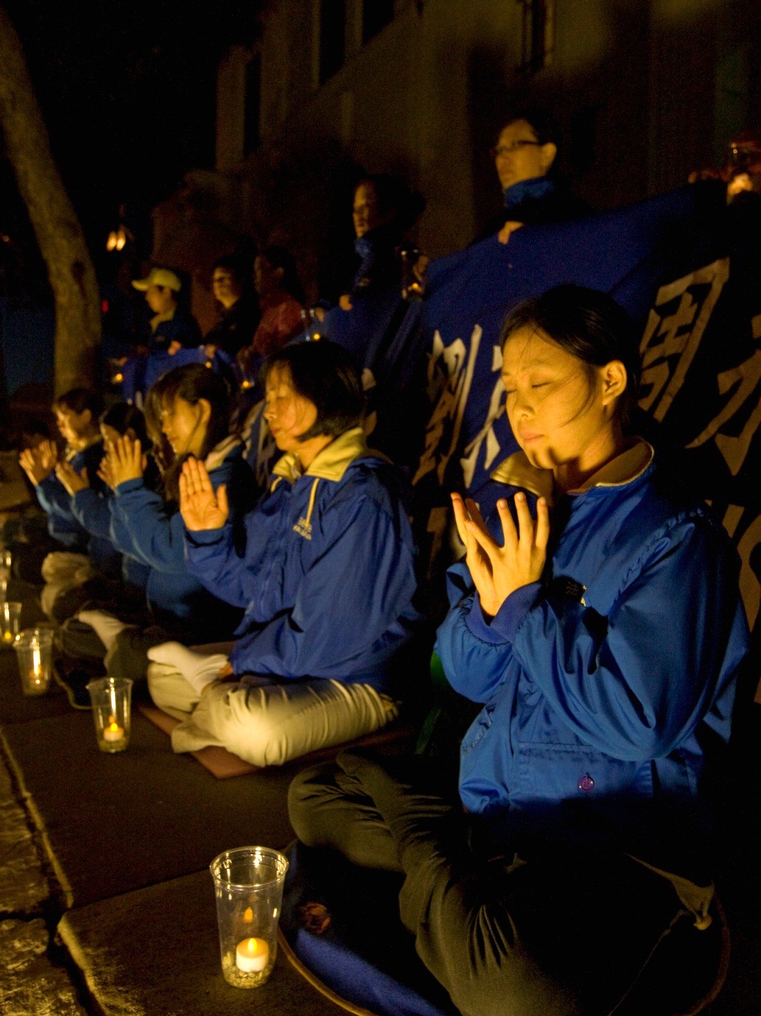 法轮功学员举行烛光守夜活动,悼念在中国被迫害致死的法轮功学感动世人