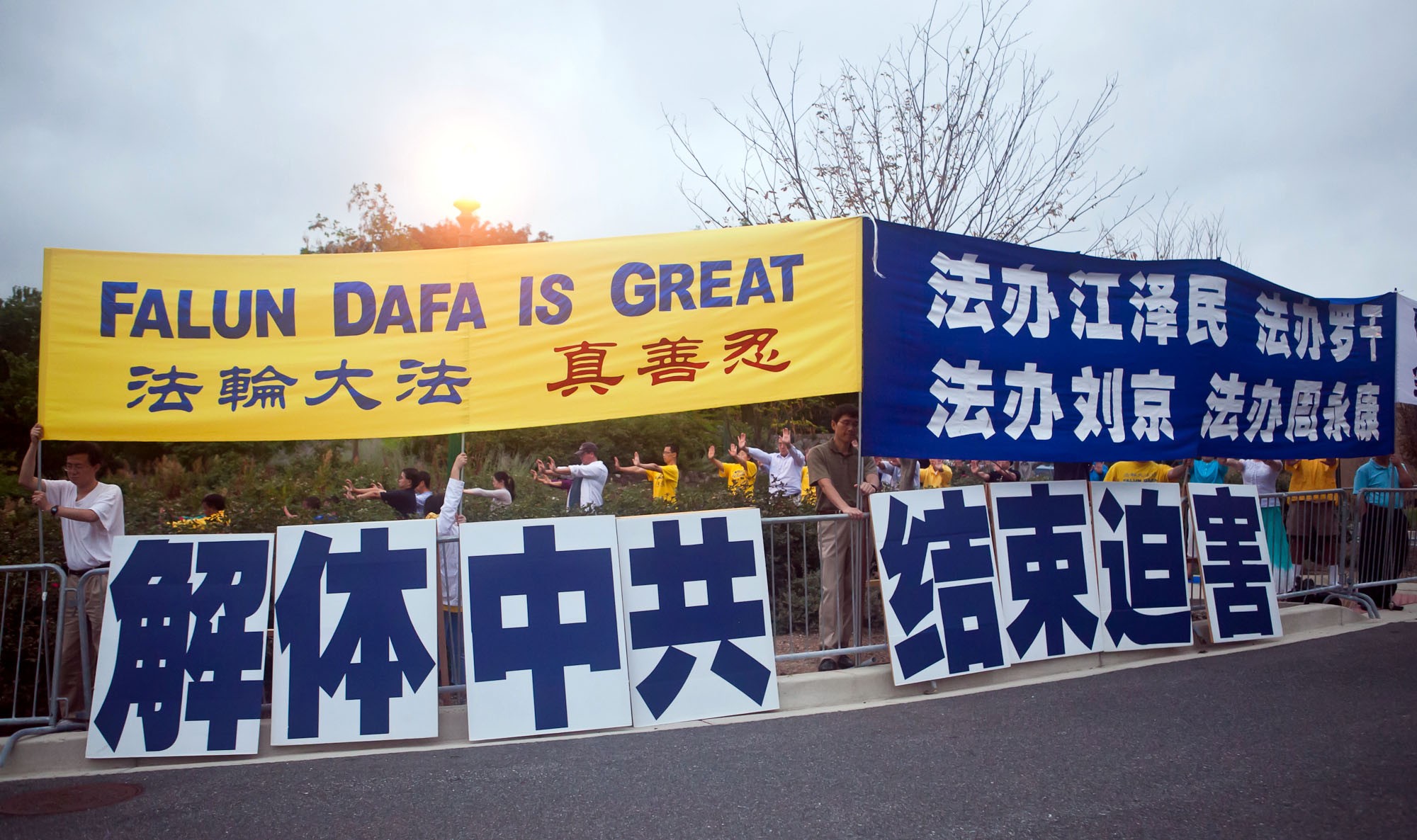 法轮功学员多年坚持在华盛顿DC中使馆前和平抗议