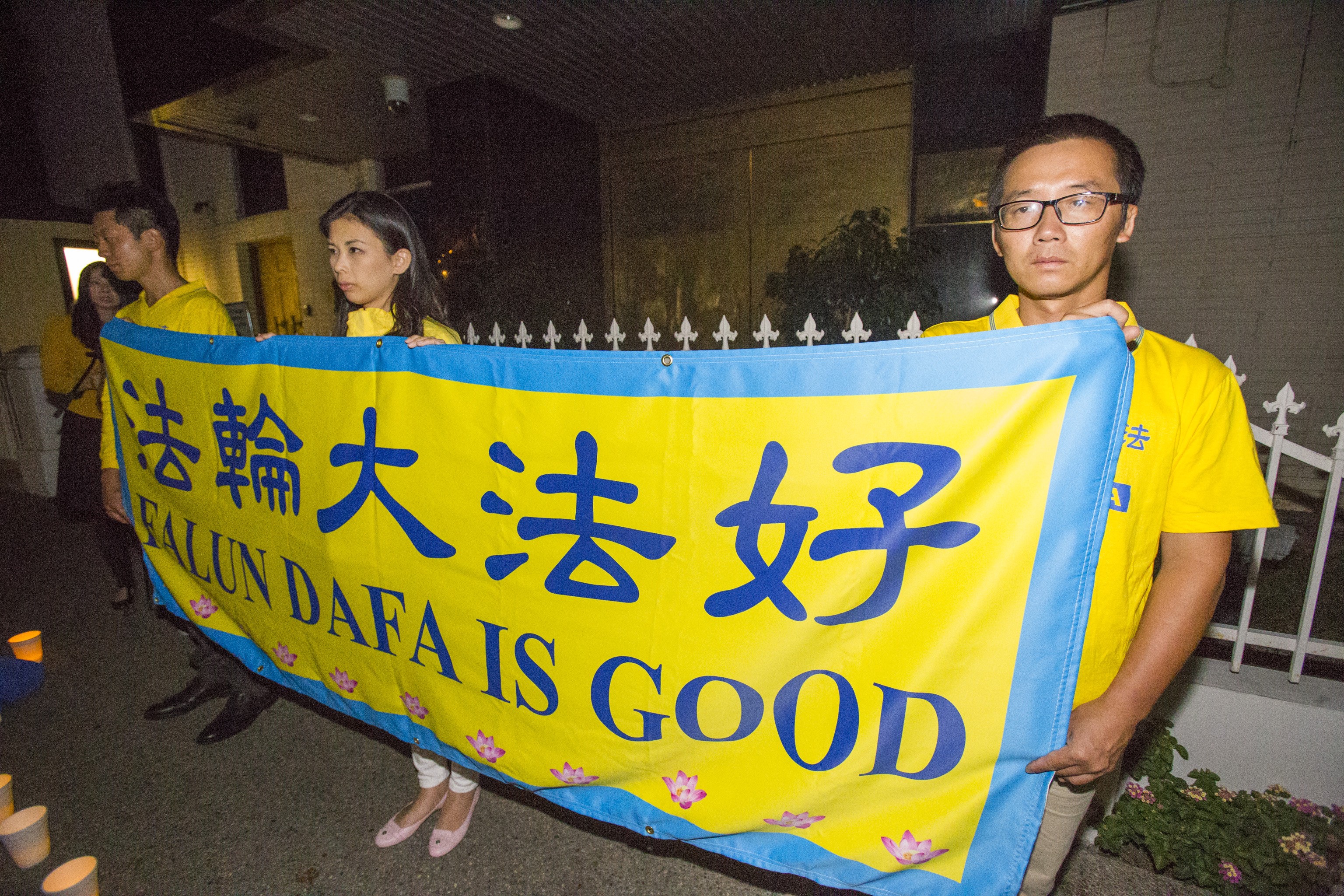 法轮功在中领馆前烛光夜悼,呼吁坚持正义良知,揭露中共非人道的迫害,