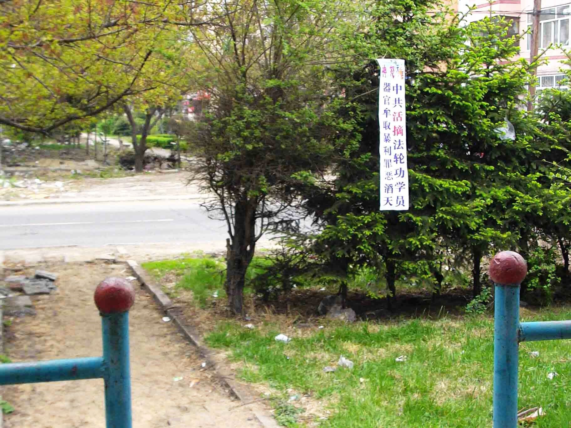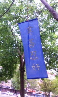 吉林某地大街小巷都可见到“法轮大法好,真善忍好”等条幅、黏贴或挂件