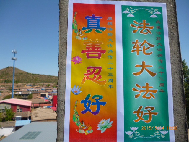 河北张家口涿鹿县庆祝“世界法轮大法日”,大街路边出现“法轮大法好”条幅