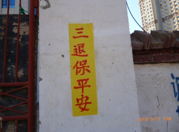 哈尔滨城镇街道、住宅区可见真相标语