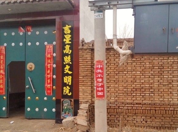 抚顺市城市乡村出现的诉江展板和真相条幅