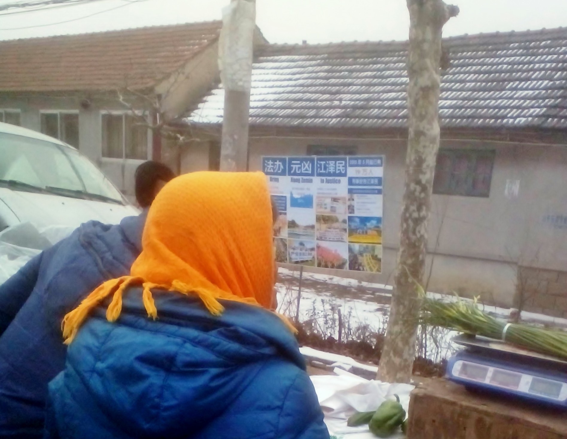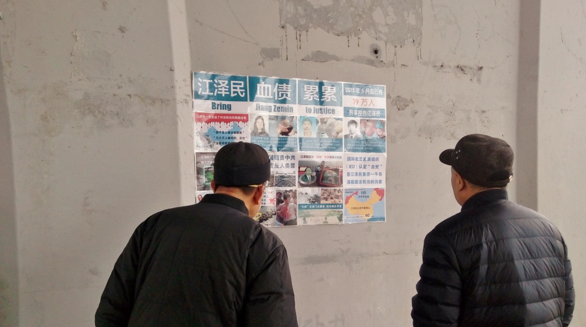 黑龙江省某地居民区的诉江展板吸引路人观看