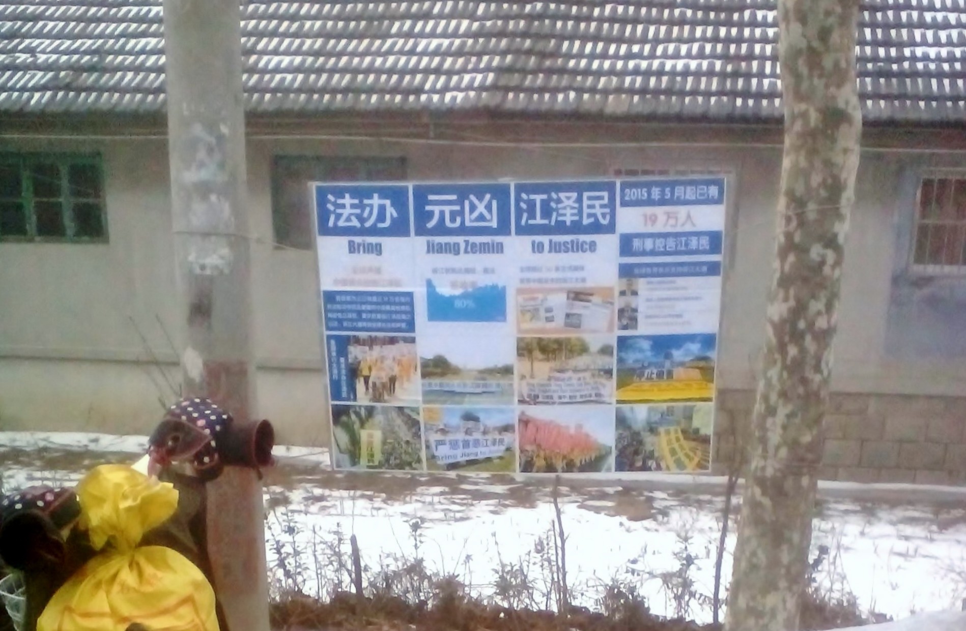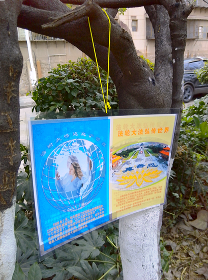 过年前哈尔滨大法弟子在居民区贴出的诉江展板
