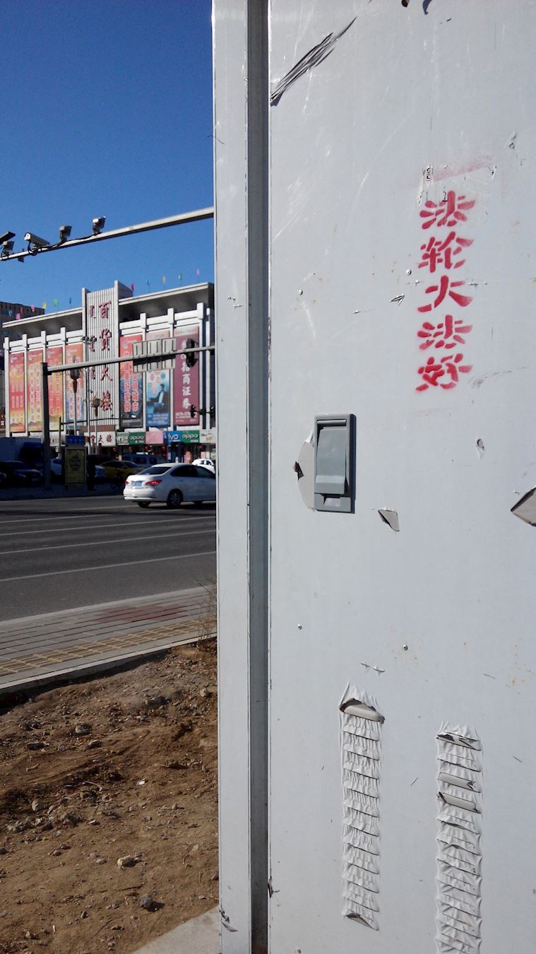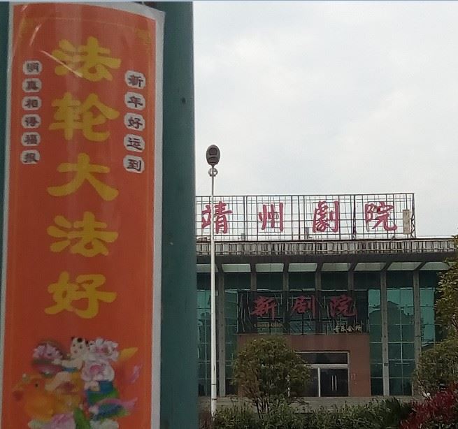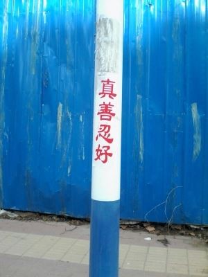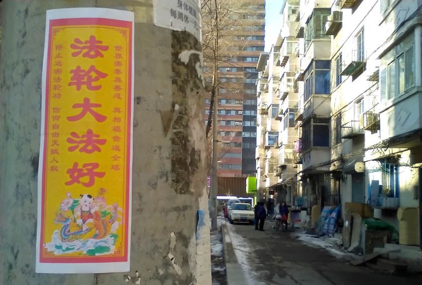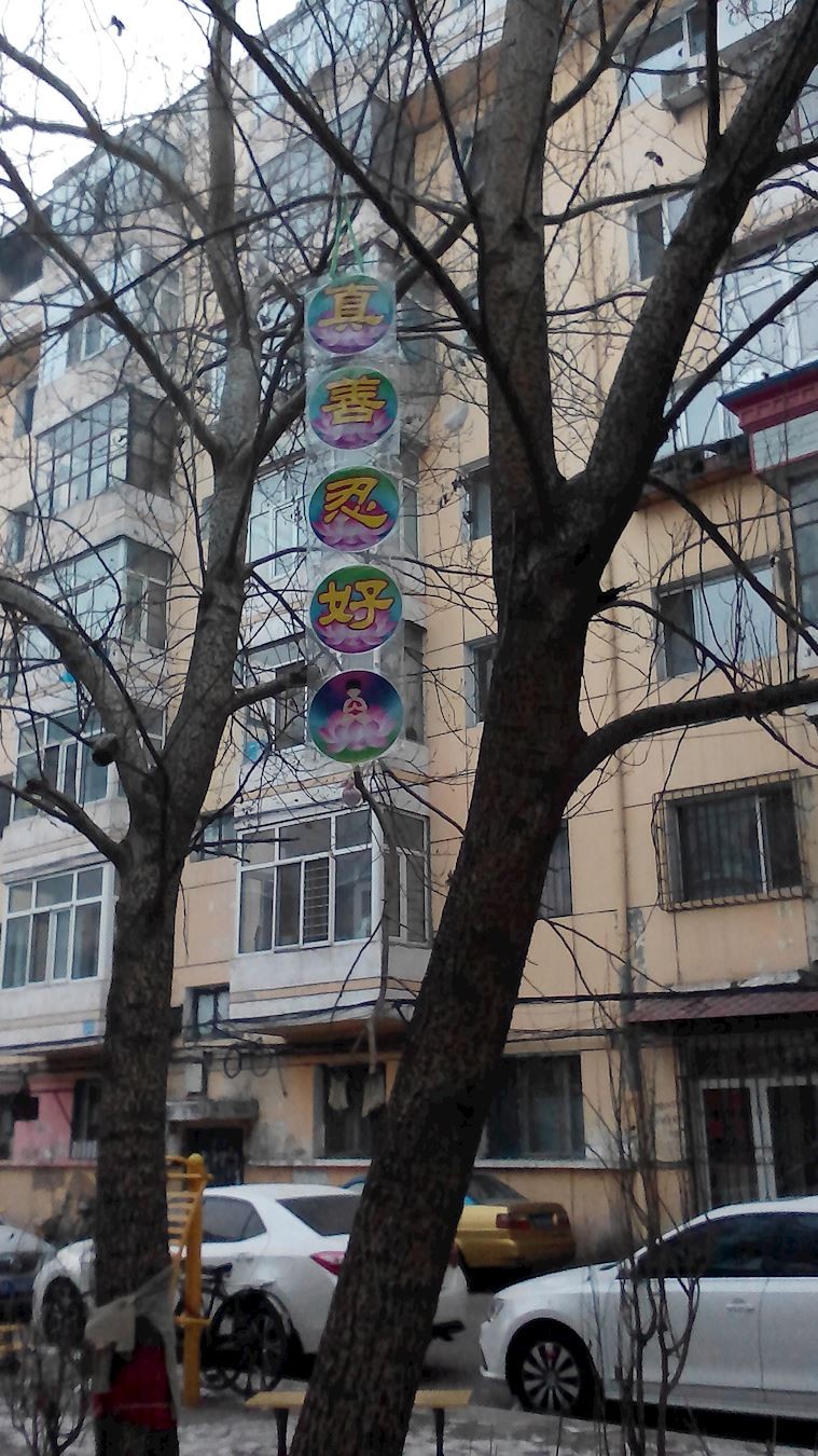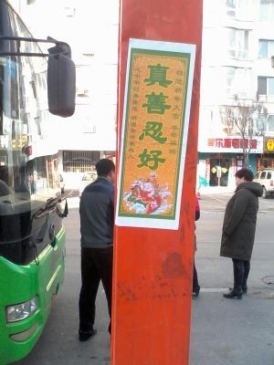 大陆多地街头展板、标语传递“法轮大法好”