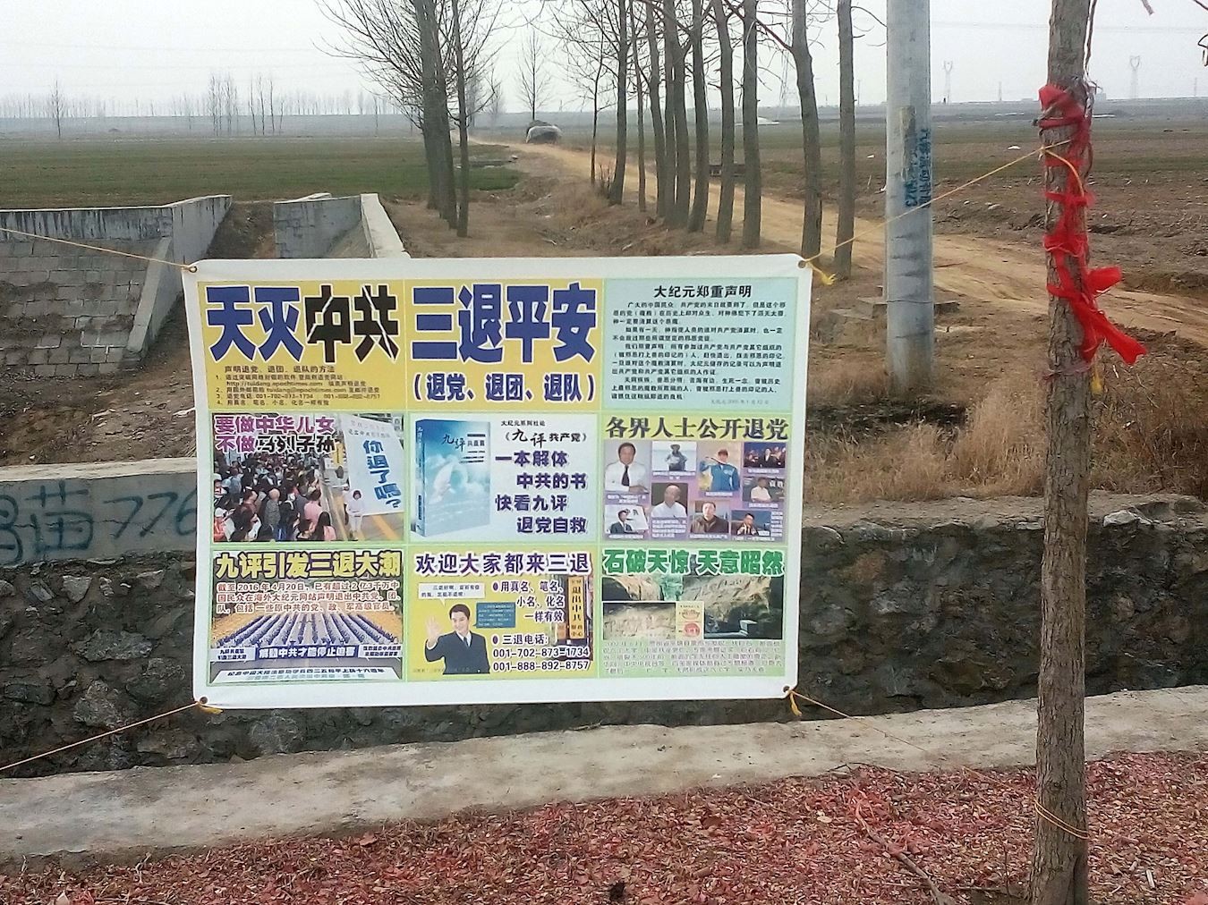 黑龙江、内蒙古和山东的真相条幅和展板