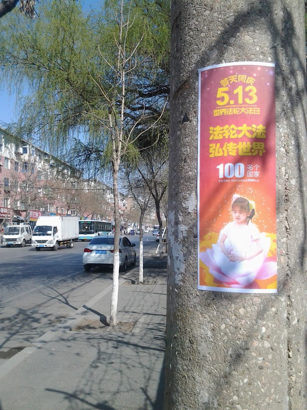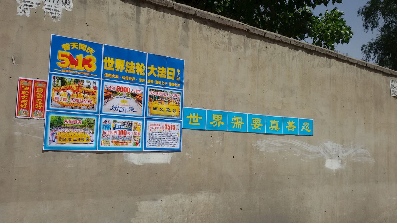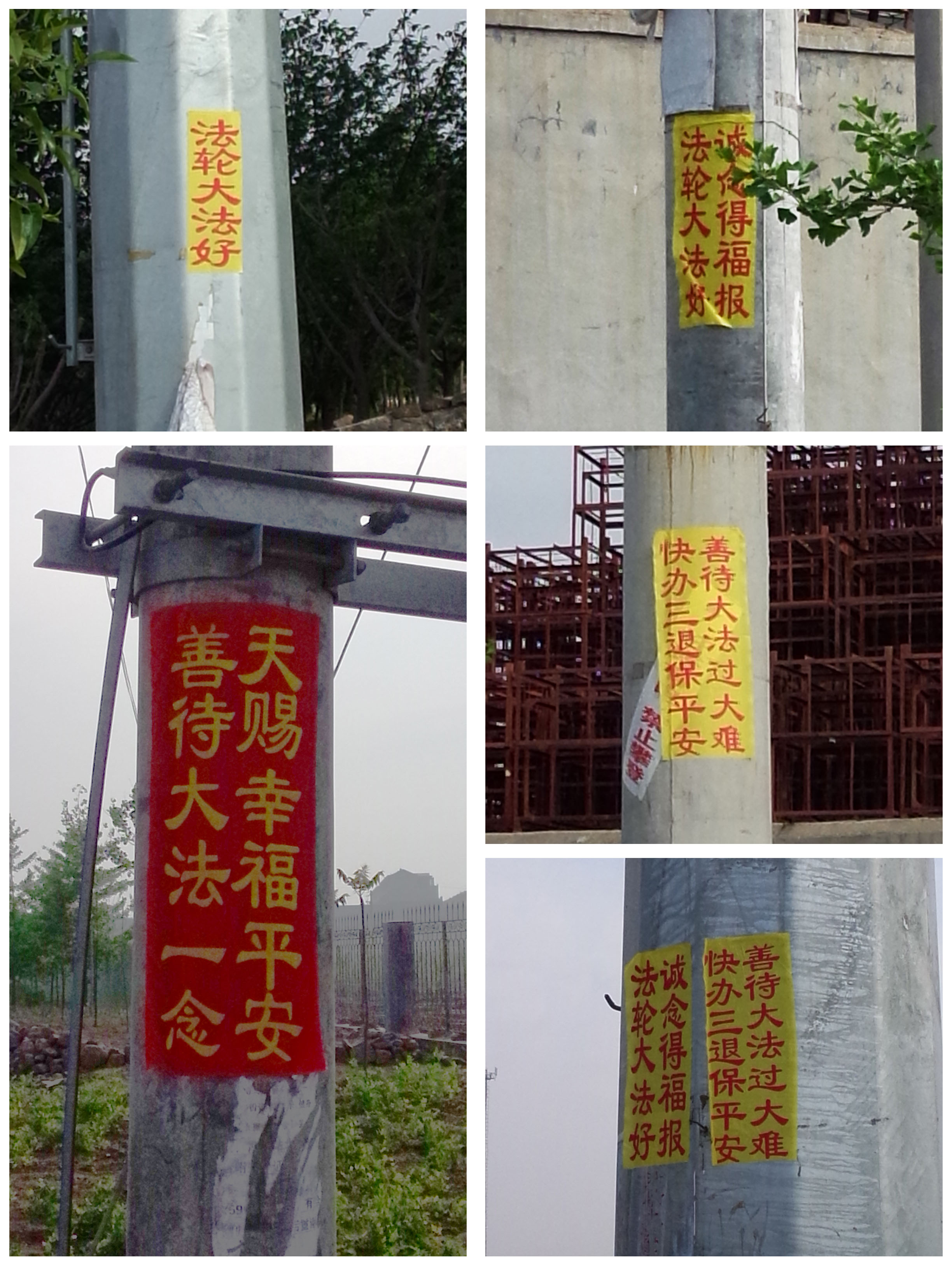 “法轮大法好”在大陆广传 ,各地真相粘贴和条幅