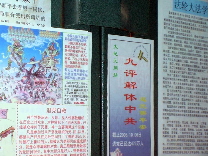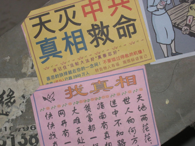 北方出现很多三退(退党、退团、退队) 条幅、法轮功真相标语等