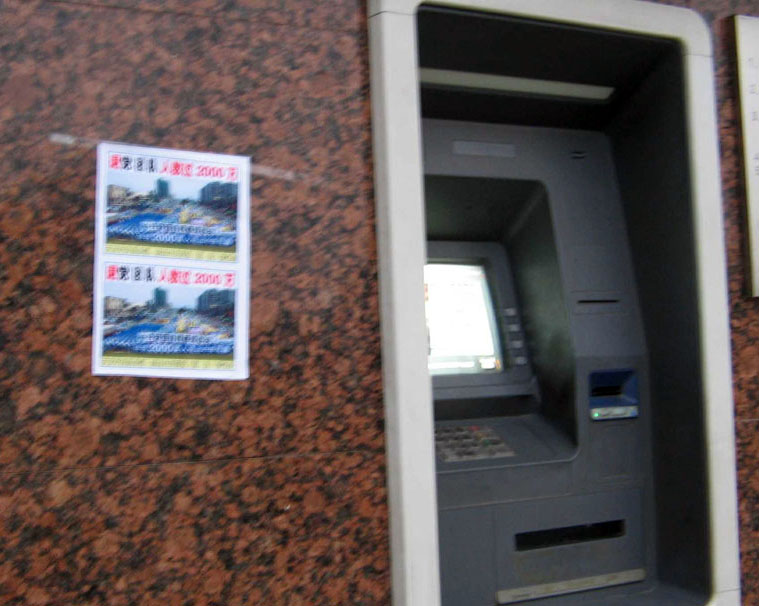 零七年七一前夕河北某地退党的横幅与标语图为自动取款机旁