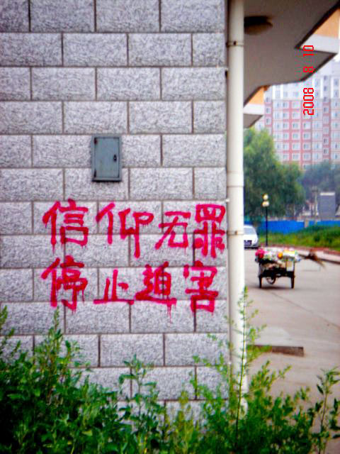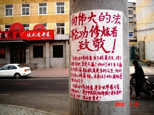 辽宁某地一早市及各主要街道五月十三日出现庆祝世界大法日的条幅、标语 2008