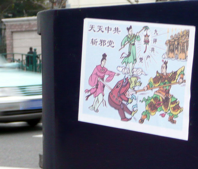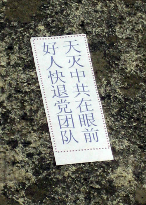 四川街头电线杆上退党不干胶,展现世人在觉醒.