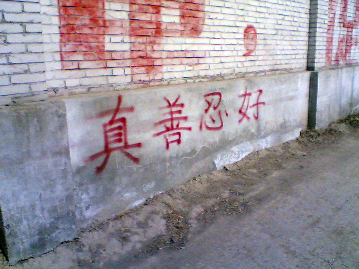 “十一”大陆北方某城市出现大量天灭中共,法轮功真相、法办江泽民的标语。