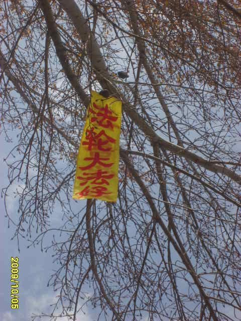 二零一零年五月十三日河北省张家口市法轮功学员挂的真相展板