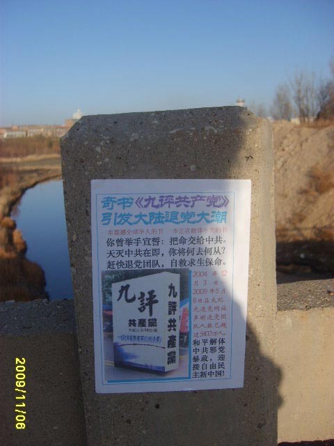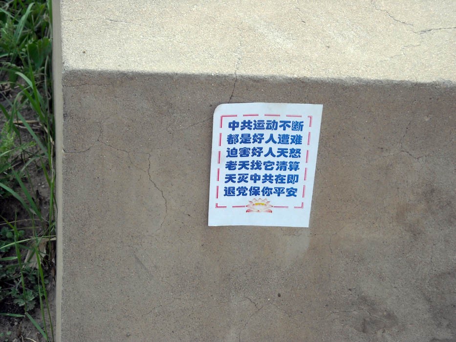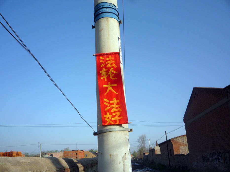 东北某地五月十三日随处可见法轮功真相条幅粘贴