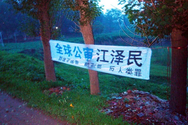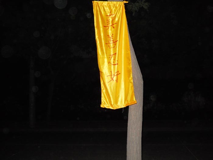 长春法轮功学员“七二零”前夕挂的真相条幅